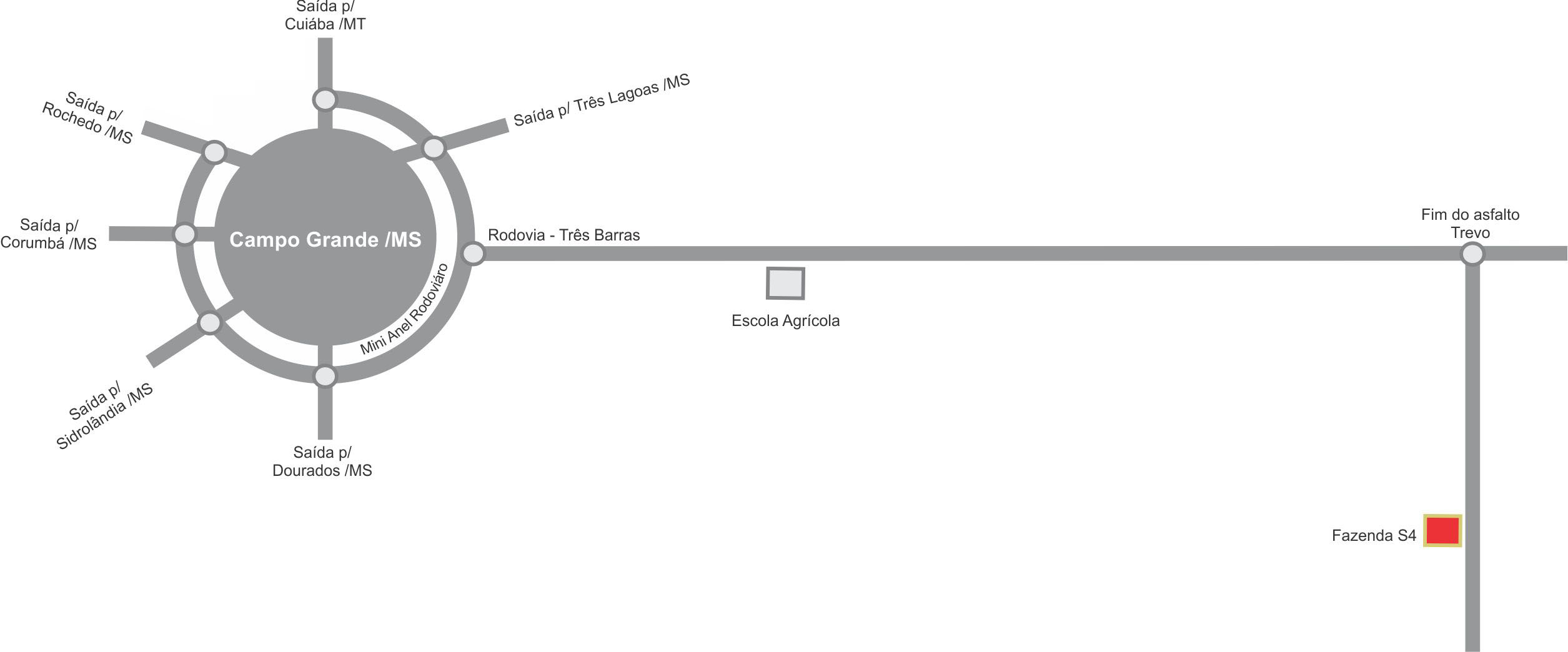 MS 040, no trevo final do asfalto da rodovia 3 Barras, seguir a direita +/- 2,5 km primeira entrada lado direito.
