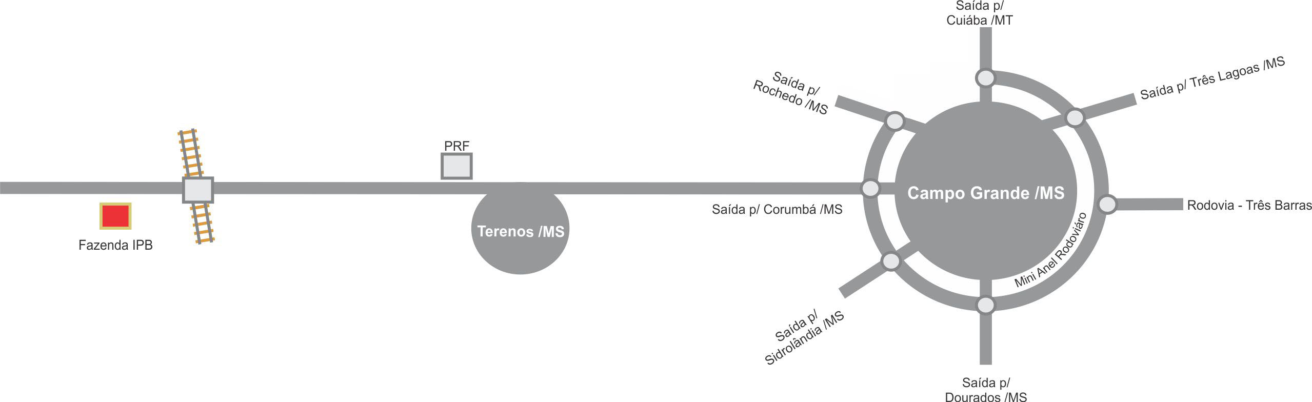 BR 262, Km 392,5 - Campo Grande /MS sentido Corumbá /MS, 10 Km de Terenos /MS após Viaduto da Linha Ferroviária 100 mt lado esquerdo primeira entrada.
